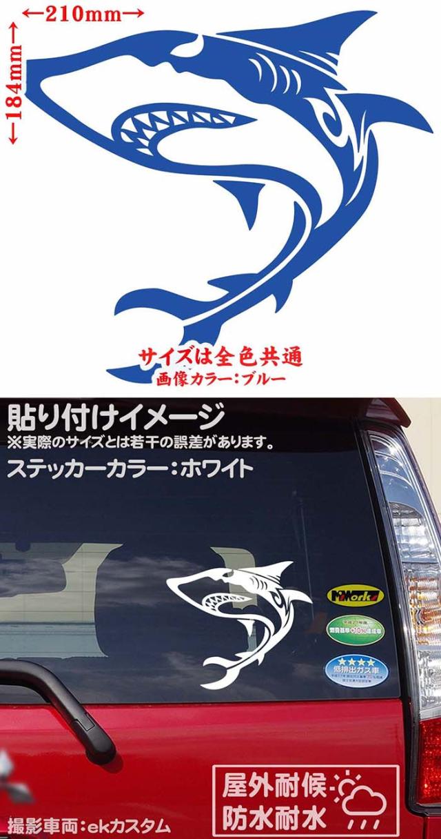 シャーク shark サメ 鮫 トライバル 2(左向き) サイズL カッティングステッカー 全12色 車 バイク かっこいい おしゃれ タンク カウル ボンネット スノーボード スーツケース ステッカー 防水 耐水 アウトドア デカール 転写シール 184mmX210mm