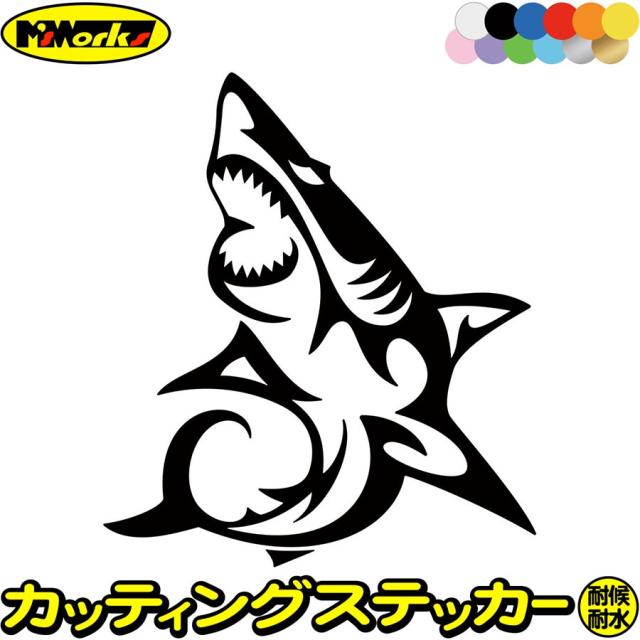シャーク shark サメ 鮫 トライバル 8(左向き) サイズL カッティングステッカー 全12色 車 バイク かっこいい おしゃれ タンク カウル ボンネット スーツケース ステッカー 防水 耐水 アウトドア デカール 転写シール 210mmX184mm