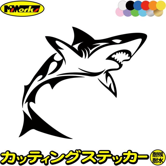 車ステッカー カーステッカー カー用 シャーク shark サメ 鮫 トライバル 4(右向き) サイズL カッティングステッカー 全12色 車 バイク かっこいい おしゃれ タンク カウル ボンネット スーツケース ステッカー 防水 耐水 アウトドア デカール 転写シール 184mmX210mm
