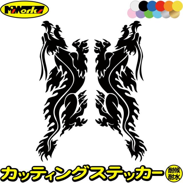 ドラゴン ステッカー ドラゴン 龍 竜 トライバル 2-10(左右セット) サイズL カッティングステッカー 全12色 車 バイク かっこいい 龍神 傷隠し タンク ガラス ボンネット ステッカー 防水 耐水 アウトドア デカール 転写シール 195mmX73mm