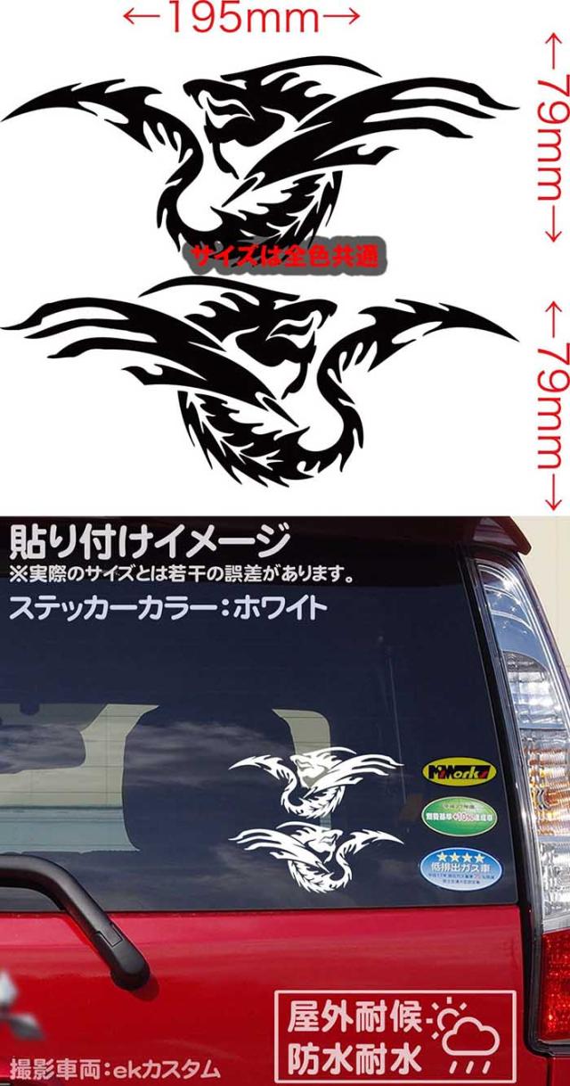 車ステッカー カーステッカー 車用 カー用品 ドラゴン 龍 竜 トライバル 2-24(左右セット) サイズL カッティングステッカー 全12色 車 バイク かっこいい 龍神 キズ隠し タンク ガラス ボンネット ステッカー 防水 耐水 アウトドア デカール 転写シール 195mmX79mm