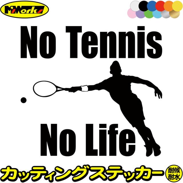 テニス ステッカー No Tennis No Life ( テニス )8 カッティングステッカー 全12色 車 ウィンドウ 窓ガラス かっこいい 庭球 シルエット 愛好家 nolife ノーライフ テニス ステッカー 防水 耐水 アウトドア デカール 転写シール 180mmX195mm (SP)