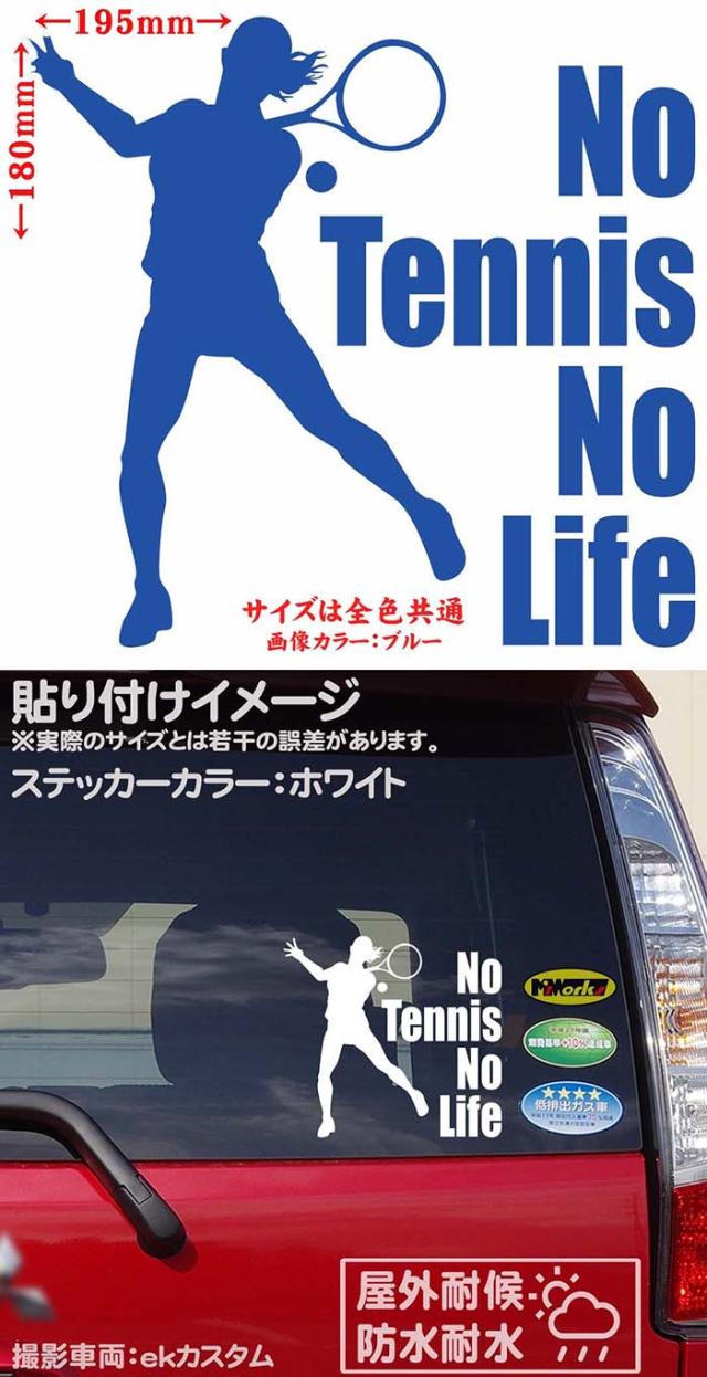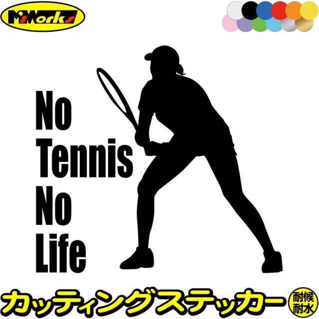 テニス ステッカー No Tennis No Life ( テニス )14 カッティングステッカー 全12色 車 ウィンドウ 窓ガラス かっこいい 庭球 シルエット 愛好家 nolife ノーライフ テニス ステッカー 防水 耐水 アウトドア デカール 転写シール 180mmX195mm (SP)