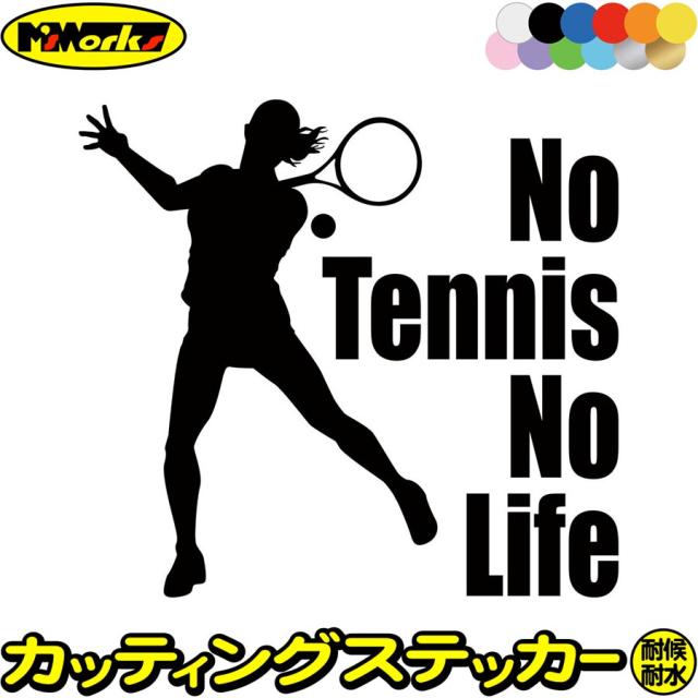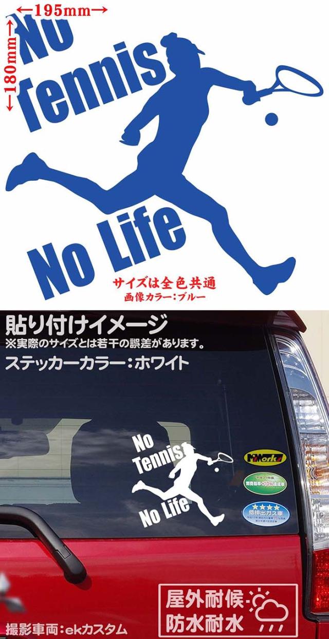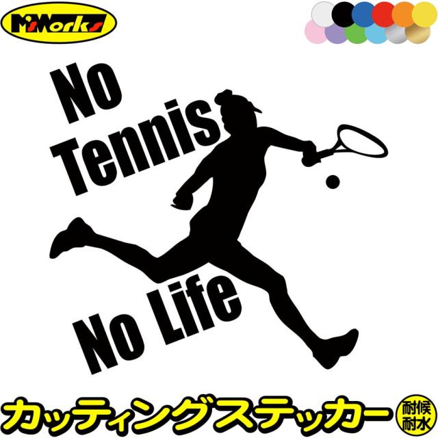 テニス ステッカー No Tennis No Life ( テニス )15 カッティングステッカー 全12色 車 ウィンドウ 窓ガラス かっこいい 庭球 シルエット 愛好家 nolife ノーライフ テニス ステッカー 防水 耐水 アウトドア デカール 転写シール 180mmX195mm (SP)