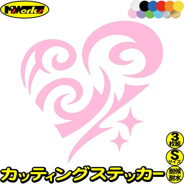 ハート ステッカー ハート トライバル 8 (3枚1セット) サイズS カッティングステッカー 全12色 バイク 車 ヘルメット かわいい 給油口 カスタム おしゃれ カウル タンク ステッカー 防水 耐水 アウトドア デカール 転写シール 60mmX60mm