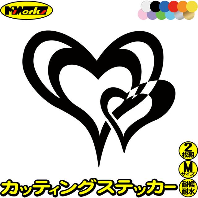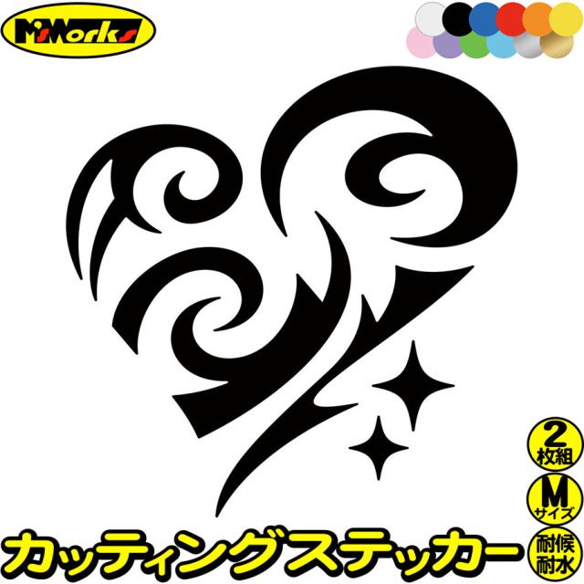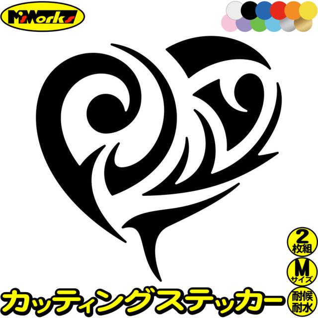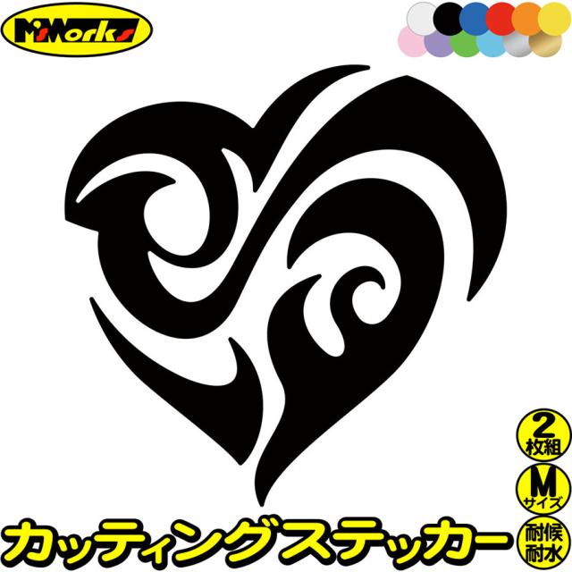 車ステッカー カーステッカー 車用 カー用品 ハート トライバル 9 (2枚1セット) サイズM カッティングステッカー 全12色 バイク 車 ヘルメット カスタム おしゃれ 給油口 カウル タンク ステッカー 防水 耐水 アウトドア デカール 転写シール 95mmX95mm