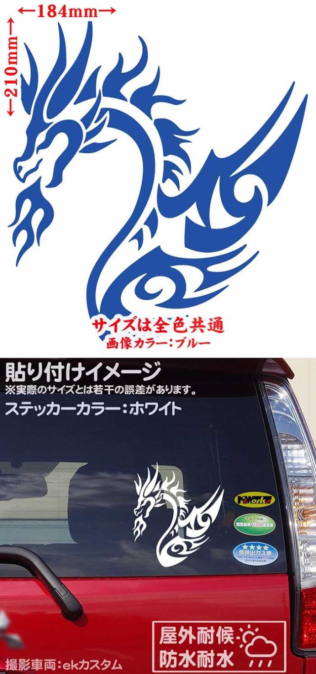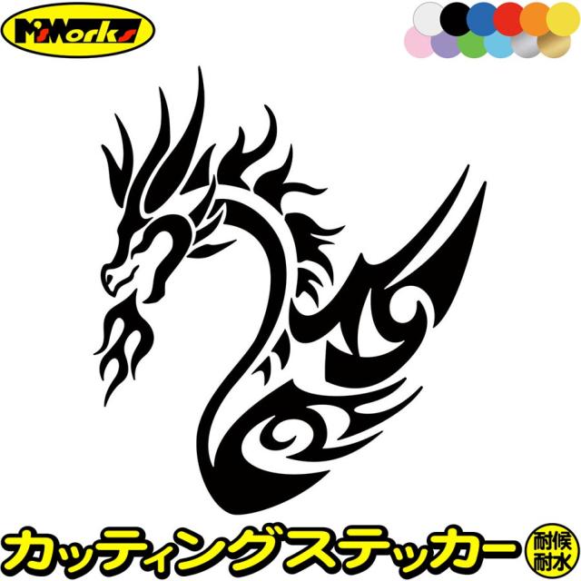 ドラゴン ステッカー ドラゴン 龍 竜 トライバル 4-4(左向き) サイズL カッティングステッカー 全12色 車 バイク かっこいい 龍神 タンク カウル ヘルメット キズ隠し ステッカー 防水 耐水 アウトドア デカール 転写シール 210mmX184mm