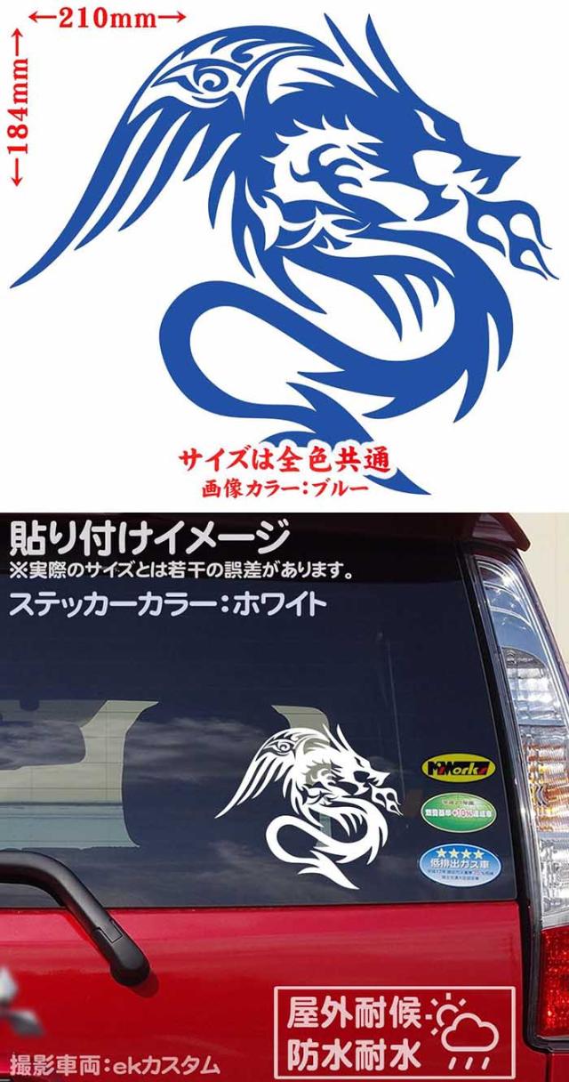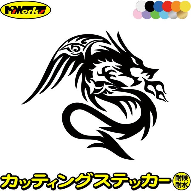 車ステッカー カーステッカー 車用 カー用品 ドラゴン 龍 竜 トライバル 4-6(右向き) サイズL カッティングステッカー 全12色 車 バイク かっこいい 龍神 タンク カウル ヘルメット キズ隠し ステッカー 防水 耐水 アウトドア デカール 転写シール 184mmX210mm