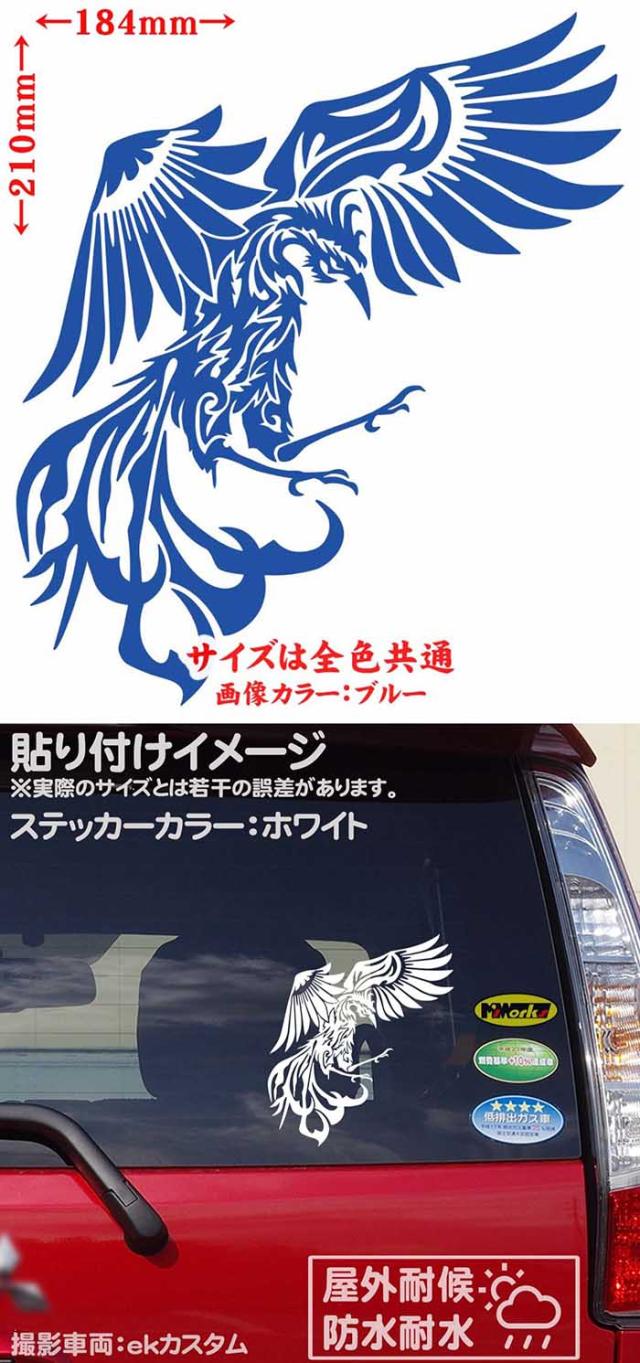 かっこいい 車 バイク ステッカー 鳳凰 不死鳥 フェニックス phoenix トライバル (右) サイズL カッティングステッカー 全12色 和柄 和風 タンク ガラス カウル ボックス ステッカー 防水 耐水 アウトドア デカール 転写シール 210mmX184mm