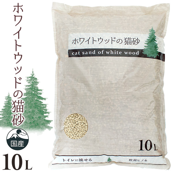 ホワイトウッドの猫砂 10L ■ 木系 固まる 流せる 燃やせる 消臭 国産 ひのき