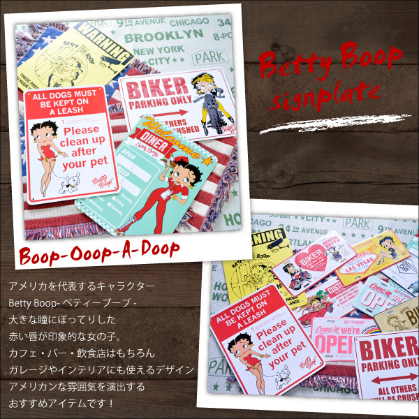 アメリカン 看板 ベティブープ ベティちゃん プラスチック サインプレート ボード Diner OPEN CLOSED WARNING PARKING インテリア=┃