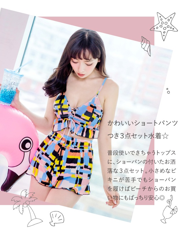 普段使いできちゃうトップスにショーパンの付いた3点セット!