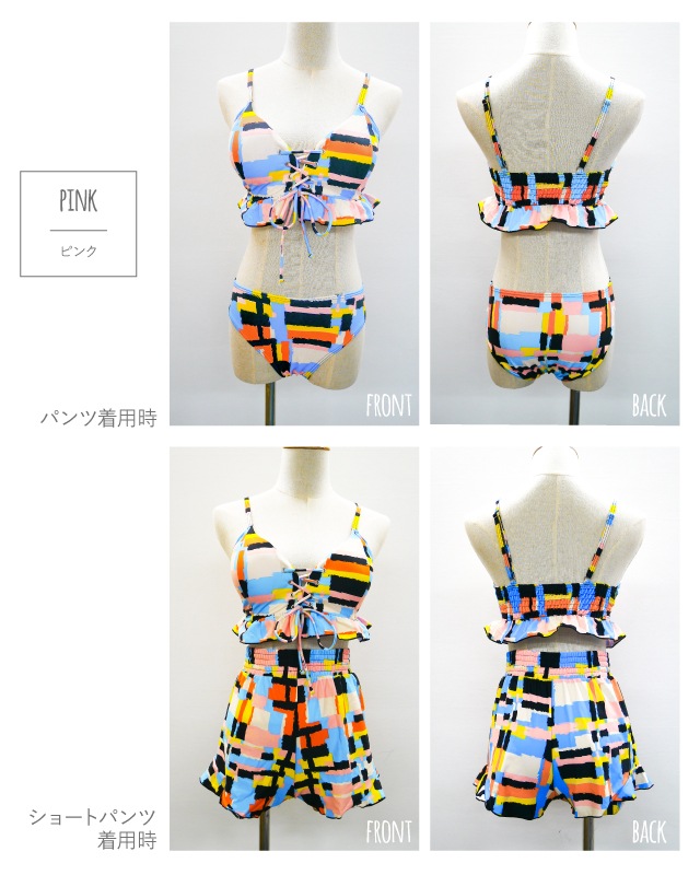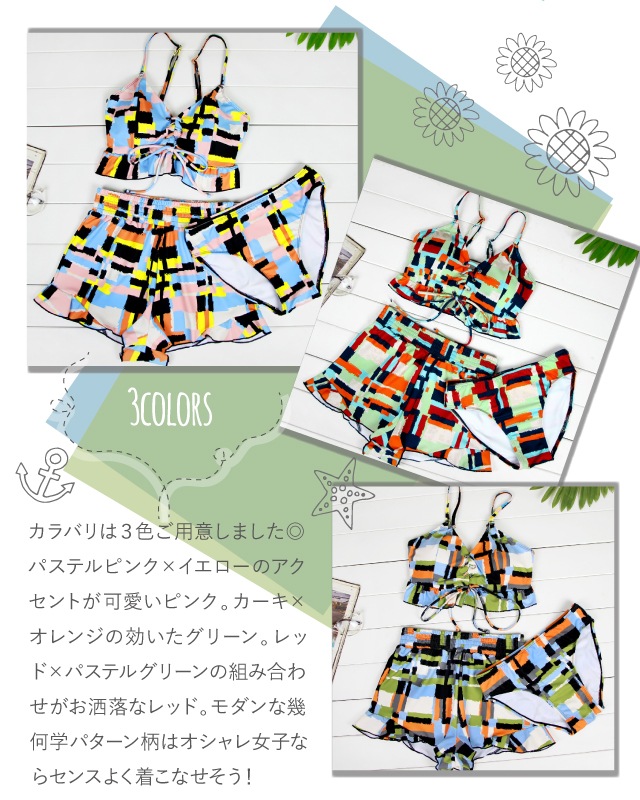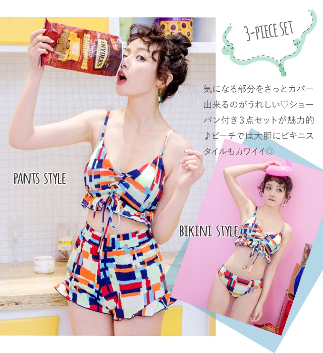 水着 レディース ビキニ 2018 バンドゥ プチプラ デザインビキニ スイムウェア 体型カバー 3点セット レース agesugi_sfa