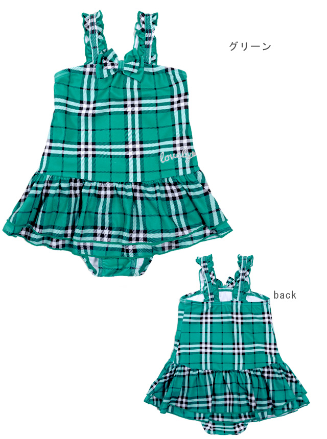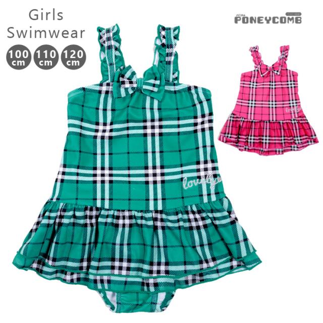 PONEY COMB(パニカム)の女の子用ワンピース水着。ガーリーなチェック柄が特徴的なアイテム。リボンやフリルが付いていてとってもCUTEです。飾りのリボンは取外しができません。