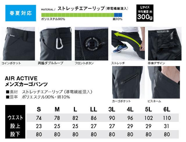 作業服 藤和 TS DESIGN AIR ACTIVE メンズカーゴパンツ 8104