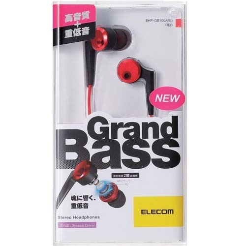 エレコム ステレオヘッドホン グランドバス レッド EHP-GB100ARD(1コ入)[ヘッドホン・イヤホン]