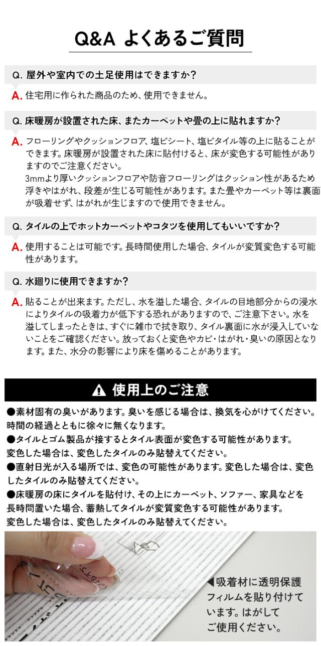 ※直射日光が入る場所では、変色の可能性があります。変色した場合は、変色したタイルのみ貼替えてください。