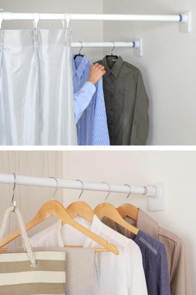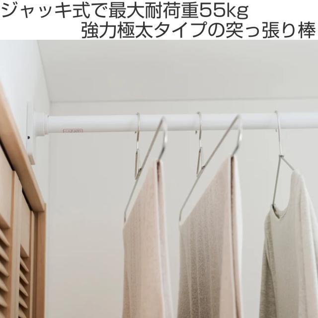 ジャッキ式の超強力タイプなので、洗濯物の部屋干し用としてや クローゼットで洋服、重さのあるバッグを掛けたりと、アイデア次第でさまざまな場所で活用できます。