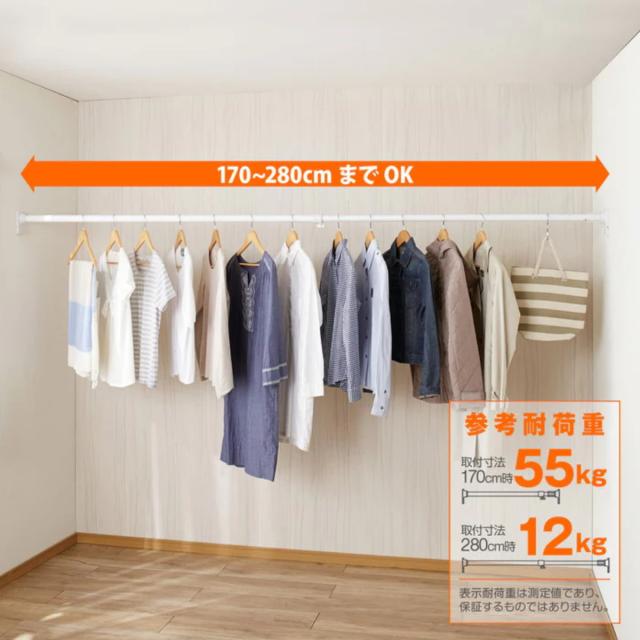 《 LH16358 耐荷重55〜12kg 55〜12kg 収納 ハンガーラック クローゼット 押入れ トイレ 納戸 洗面所 突っぱり カーテン 吊り下げ 室内干し 280cm 約 3m 55kg 丈夫 簡単 設置簡単 長い 横 キッチン 玄関 ホワイト 白 すきま収納 物干し竿 洋服掛け 隙間ポール デッドスペース 有効活用 便利グッズ 便利用品 人気 おすすめ オススメ 吊るす 掛ける カーテンレール ハンガー掛け 整理整頓 整理 整頓 片付け レール 突っ張り収納 シンプル 収納スペース 》