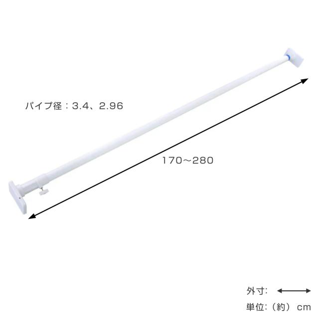 | サイズ | 約 幅170〜280×奥行7×高さ11(cm) パイプ径:3.4cm、2.96cm |