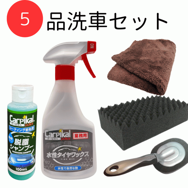 【業務用 洗車用品 5品セット】 洗車用品の必需品!カーピカル脱脂カーシャンプー コーティング車用洗車スポンジ 洗車クロスプロの洗車
