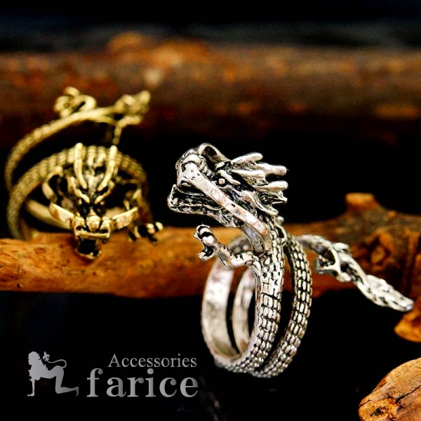 和風 ドラゴン スパイラル 龍 巻き付き ラウンド型 2重 メンズ レディース ファランジ リング 指輪 【ゴールド or シルバー】