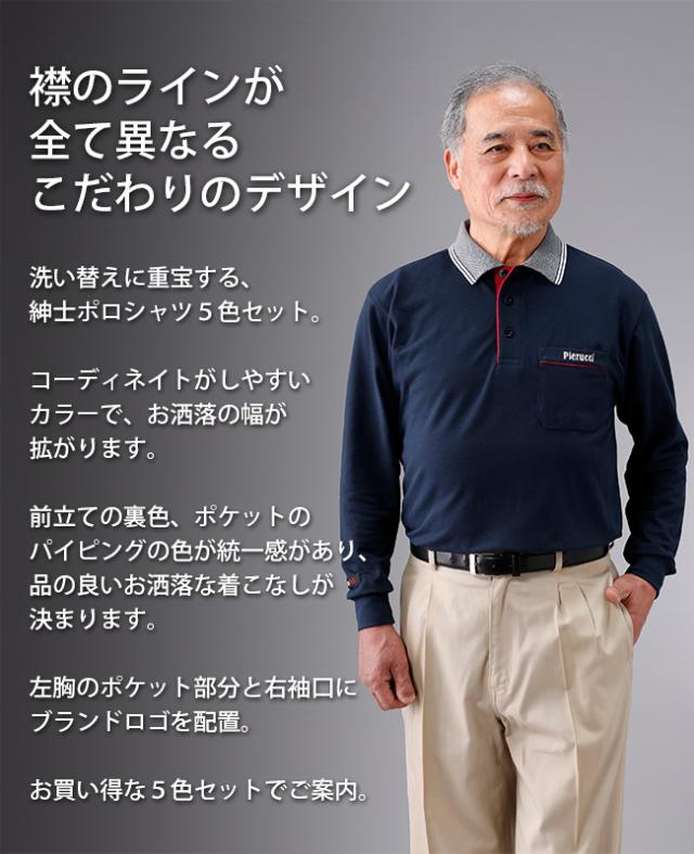 ピエルッチ Pierucci カジュアル長袖ポロシャツ 5色組 AS-0001
