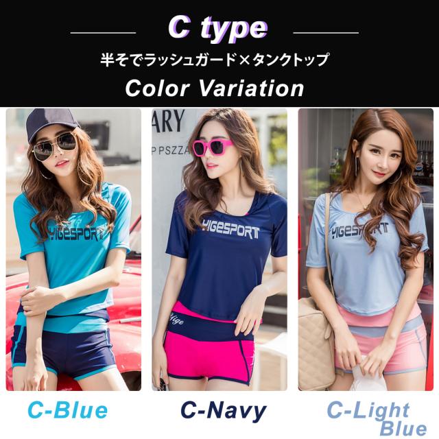 ラッシュガード+トップス+ショートパンツ 3点セット