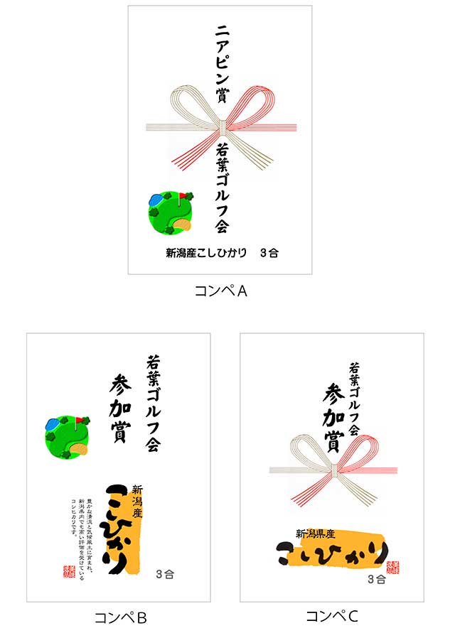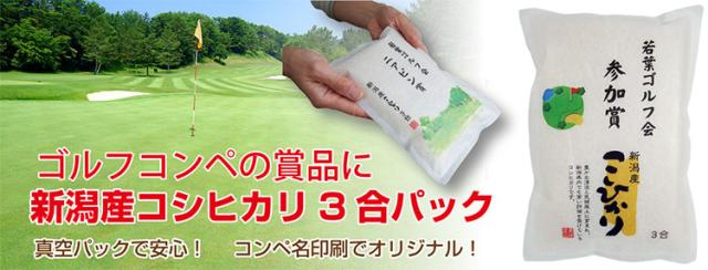 ニアピン ドラコン 参加賞 ゴルフ コンペ 景品 賞品 【真空パック】新潟産コシヒカリ3合 【コンペ名・賞名入れられます】