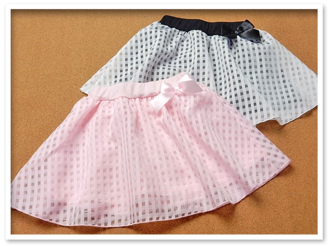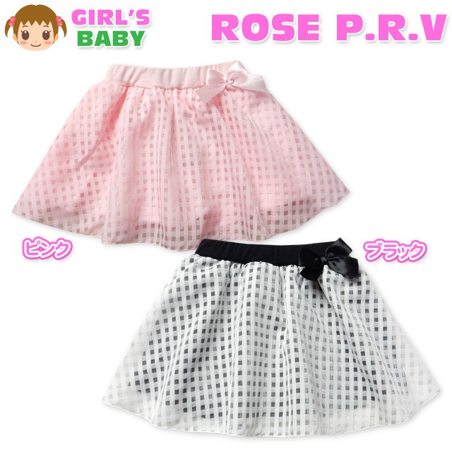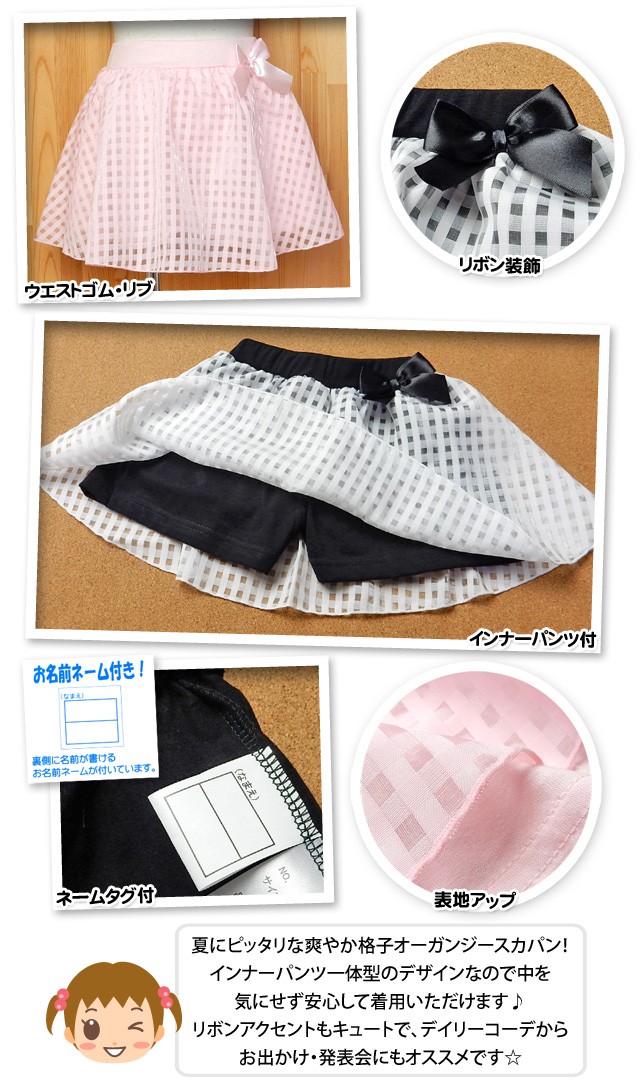 【送料無料】ベビー服 女の子 スカパン スカート ボトム 格子柄 オーガンジー リボン装飾 インナーパンツ付 ウエストゴム 女児 ベビー 【メール便対応】