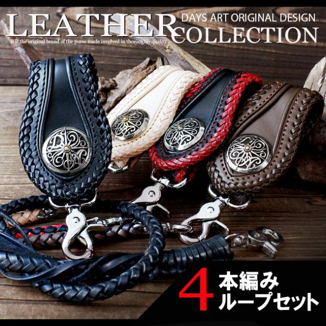 本革 ウォレットロープ ベルトループ セット 4本編み サドルレザー レースアップ ワイドタイプ 立体裁断 ウォレットチェーン 牛革 革財布 ライダースウォレット バイカーズウォレット レザーウォレット 【ギフト】 lp019-wi002