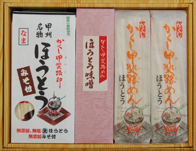 ![]() かくし甲斐路めん 山梨名物ほうとう生麺と乾麺のセット商品です。 ご贈答にもお勧めの商品です。