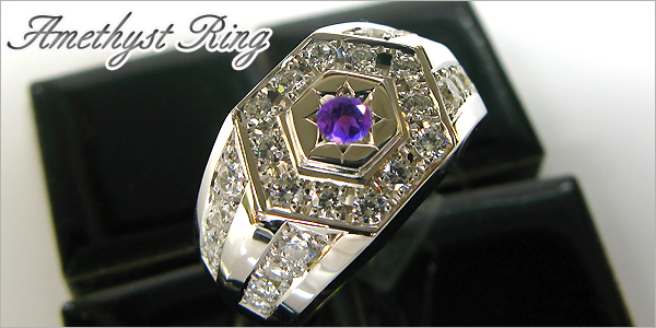 2月誕生石アメジスト・プラチナ・印台・指輪