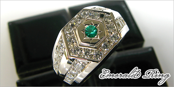 エメラルドとダイヤモンドを使用した印台タイプのプラチナリングです。