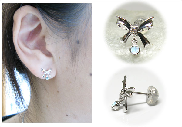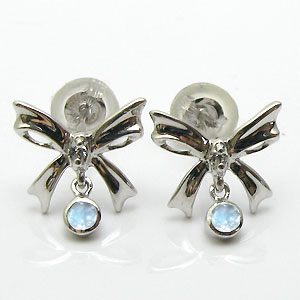 ロイヤルブルームーンストーン・ピアス・リボン・10金