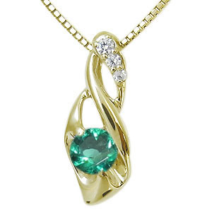 5月誕生石エメラルドを一粒使用した、18金製のネックレスペンダントです。