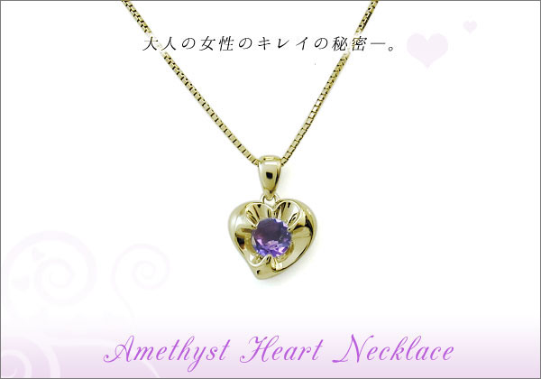 ハート・ネックレス・K18・一粒・アメジスト・ネックレス