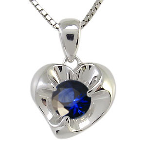 9月誕生石サファイアを一粒使用したハートモチーフのプラチナ製ネックレスペンダントです。