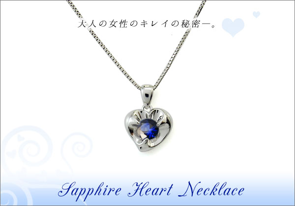 サファイア・プラチナ・ネックレス・ハート・ネックレス