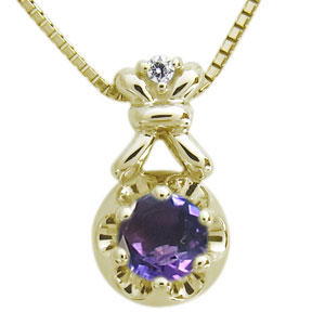 18金 アメジスト ネックレス 一粒 王冠 ネックレス