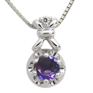 | 2月誕生石アメジストを一粒使用したプラチナ製の、王冠モチーフネックレスペンダントです。 | ||||||||||||||
