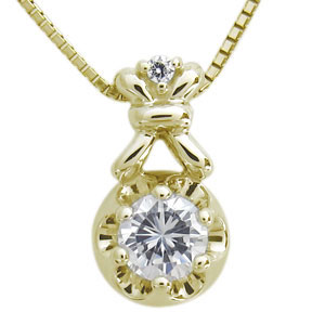18金・ダイヤモンド・ネックレス・一粒・王冠・ネックレス