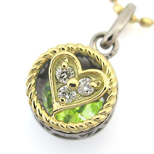 8月誕生石ペリドットを一粒使用した、ハートモチーフの
