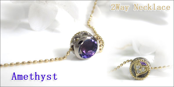 リバーシブル・ペンダント・コンビ・ネックレス・アメジスト・ハート・ペンダント