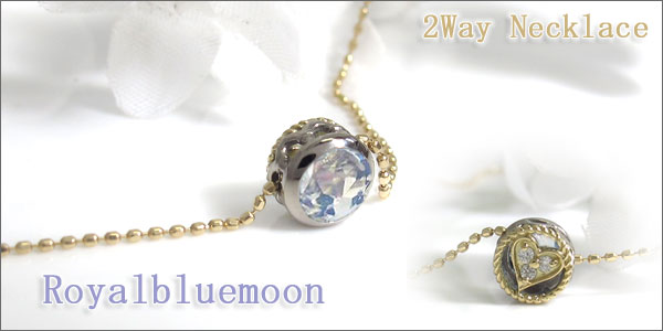 リバーシブル ペンダント コンビ ネックレス ロイヤルブルームーンストーン ハート ペンダント
