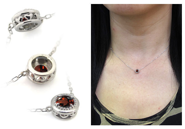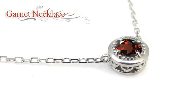1月誕生石ガーネットを一粒使用した、18金製のハートモチーフミル打ちデザインネックレスペンダントです。