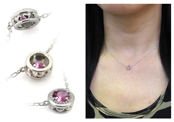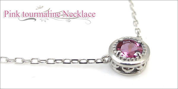 10月誕生石ピンクトルマリンを一粒使用した、18金製のハートモチーフミル打ちデザインネックレスペンダントです。