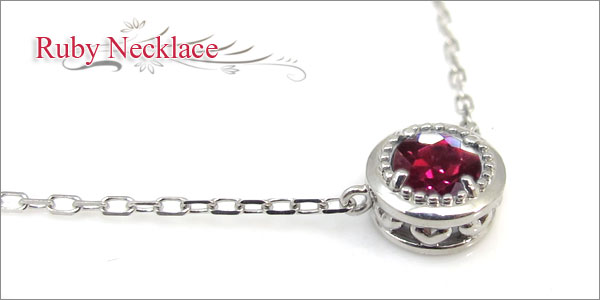 7月誕生石ルビーを一粒使用した、18金製のハートモチーフミル打ちデザインネックレスペンダントです。
