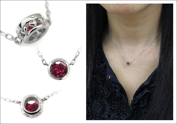 7月誕生石ルビーを一粒使用したハートモチーフのプラチナ製ネックレスペンダントです。