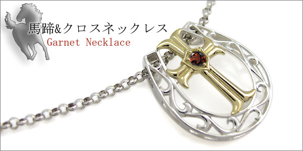 ホースシュー・馬蹄・メンズ・コンビ・ネックレス・ガーネット・ネックレス